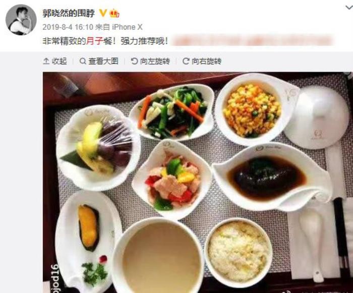 不过,整理一下,发现郭晓然生子这件大事是有迹可寻的,他去年曾发过一组月子餐照片,还圈了两个月子中心。当时粉丝都是黑人问号脸,最终定论为他在为这个月子中心打广告。