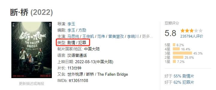 《断 · 桥》一部 tag 是剧情 / 犯罪的片,票房不好居然要被导演李玉指责是观众不懂苦难。