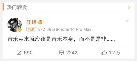 显然汪峰老师对这个事情认知很清晰,逻辑很明了,肯定是深思熟虑过的。