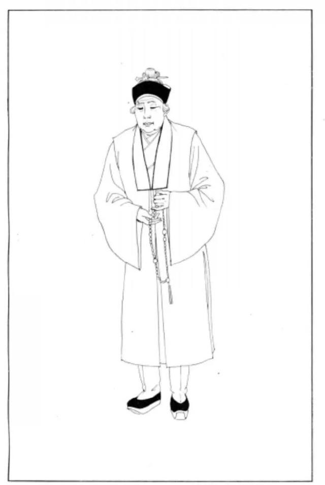 《望江亭》之老道姑。来源 /《中国京剧服装图谱》修订本,中国戏曲学院编,谭元杰绘出版发行,北京工艺美术出版社,1994 年