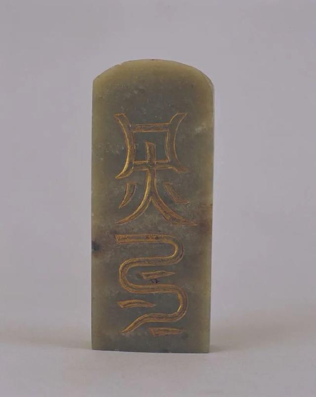 玉令牌,清,令牌青玉质,整体呈圆圭形,正面和背面均为阴刻填金道教符咒,上、下、左、右四侧面为星座图,亦阴刻填金。来源 / 故宫博物院