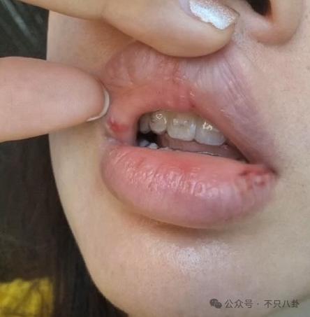 从照片上看,妹妹的嘴巴都被打坏了,嘴唇内侧都是淤血。