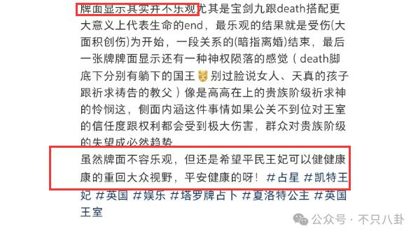 凯特不是迟迟不露面嘛,捉急的网友纷纷给她算起了塔罗牌,大家技术如何不清楚,但许多人都说算出的结果不好 ......