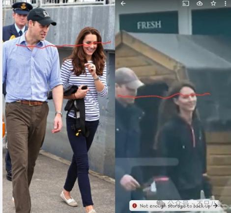 第二种就是有人认为,视频里和威廉王子在一起的不是凯特,因为身形、仪态和气质都对不上。