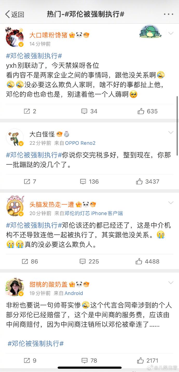 邓伦被申请强制执行174万,网友却纷纷打抱不平