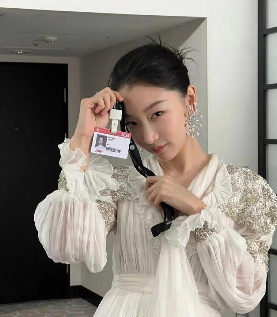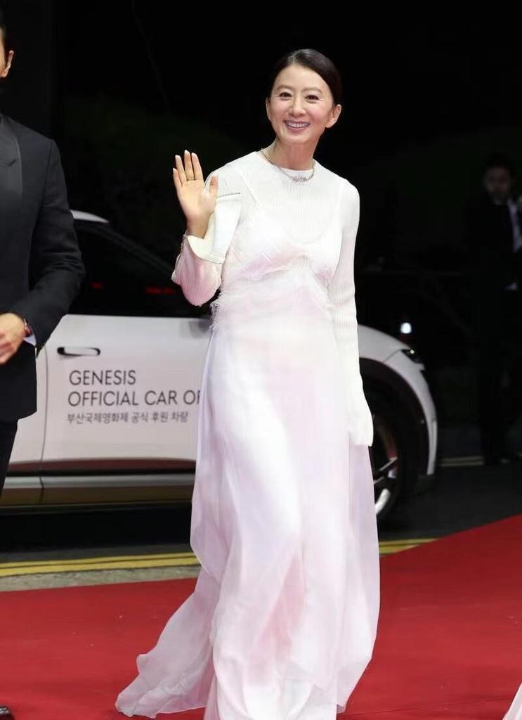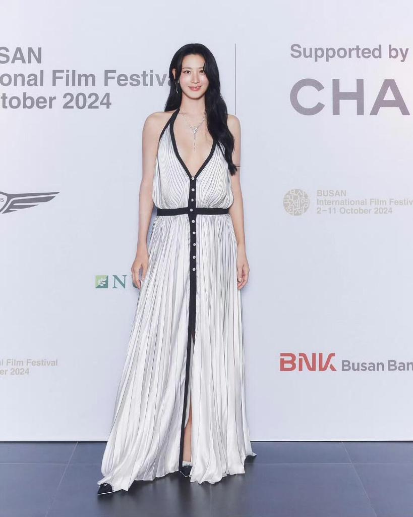 此次她是以新浪潮奖评委的身份来到釜山电影节,主办方给足了排面让她压轴出场,而周冬雨也没有让大家失望,一袭白色长裙搭配存在感极强的耳饰,观感就俩字:大气。