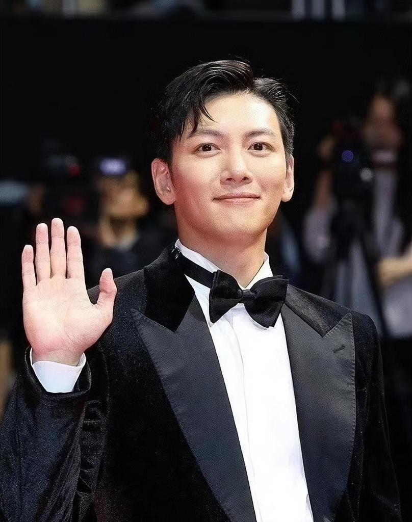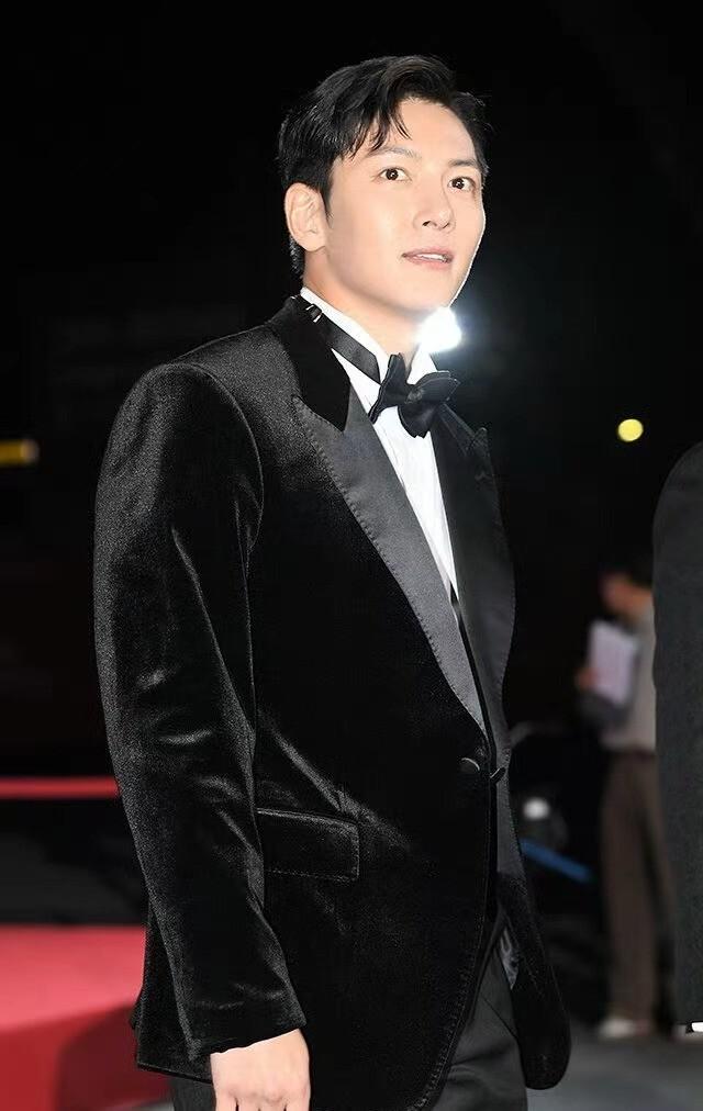池昌旭的这套造型也是黑西装配领结,与其他几位男明星没什么差别,但身材和脸,还是把这一套穿出了帅气有型的感觉。