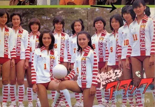 好在三原顺子有青春美貌的资本,13 岁念中学时就出演了火遍中日两国的《排球女将》,后排箭头所指这位就是,在剧中演一名替补队员 ↓↓