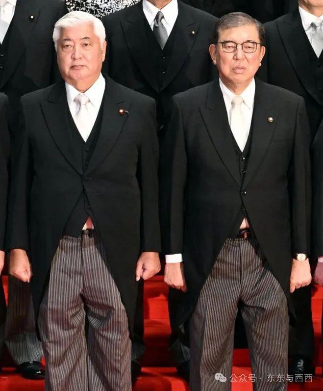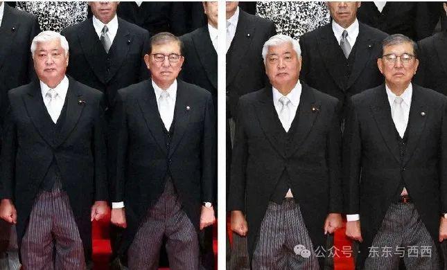 东东和西西的关注点是,在一群黑压压的燕尾服中,石破茂内阁有两位女性,一个是穿和服的文部科学大臣阿部俊子,另一个是穿洋服的儿童政策大臣三原顺子 ↓↓
