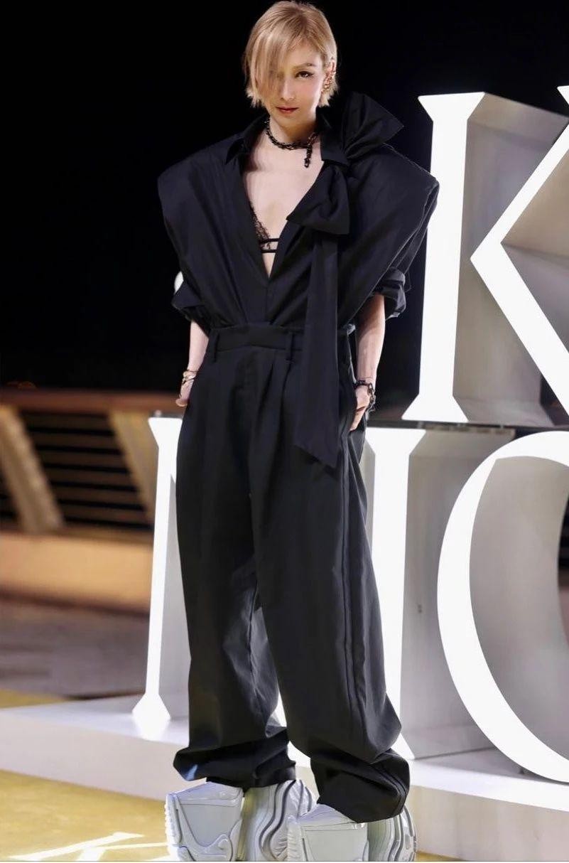 出席 K11 Night 时,一身 Valentino 2025 秋冬高订男装 Look 尽显慵懒的中性气质,宽松的廓形连身裤搭配张扬前卫的厚底鞋,内搭若隐若现的蕾丝 Bra Top,酷飒帅气中又有一丝性感,造型感直升 next level ▼