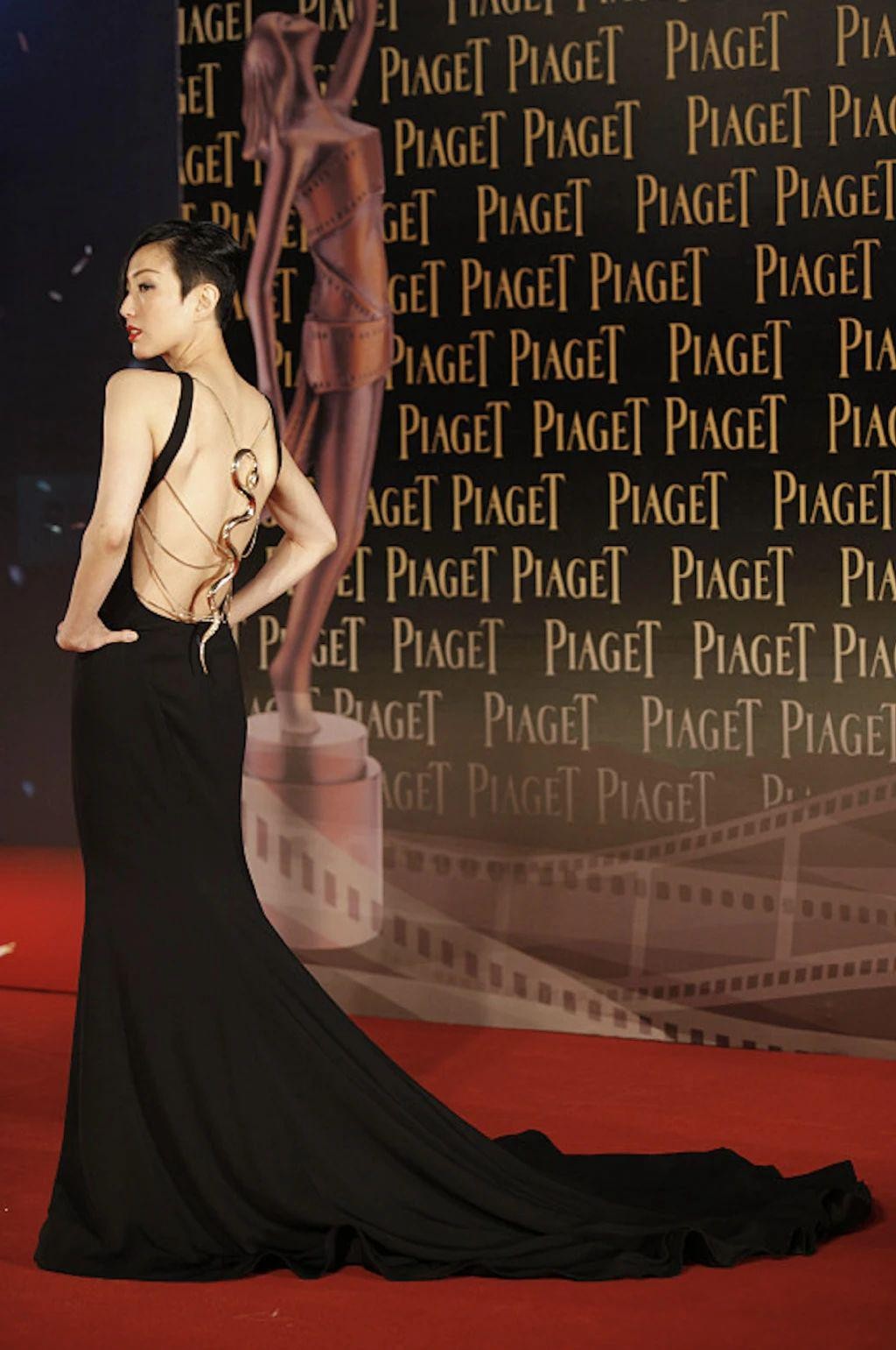 这不由得让我想起 2014 年的金像奖红毯,当时 Sammi 也是选了一条小黑裙,正面是优雅利落的 Roberto Cavalli 黑色长礼服,一转身后大露背的性感反差加上金蛇装饰,高级又时髦▼
