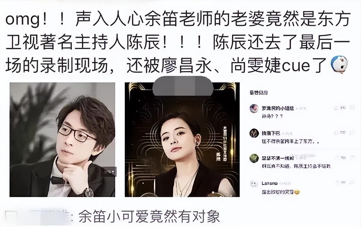 直到2018年,在湖南卫视的音乐节目《声入人心》中,余笛和陈辰的甜蜜互动才让大家恍然大悟,原来陈辰早就有了心爱之人。