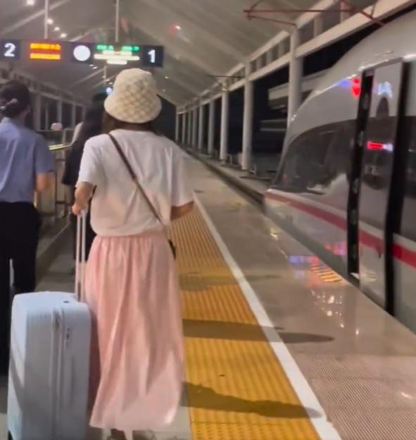 视频中,王冰冰身穿休闲装俏皮可爱,她戴着帽子,一点明星架子也没有,推着行李从高铁站下车,与周围的粉丝互动,非常亲和。