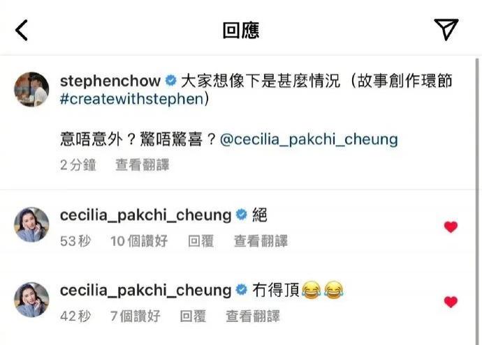 11 月 21 日,周星驰在社交媒体上晒出一张与张柏芝在男厕的旧照,邀请大家进行故事创作。周星驰还 @张柏芝询问:" 意不意外?惊不惊喜?" 张柏芝随后回应:" 绝!没得比!"
