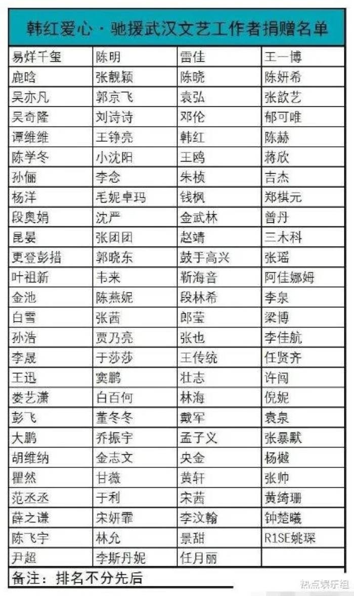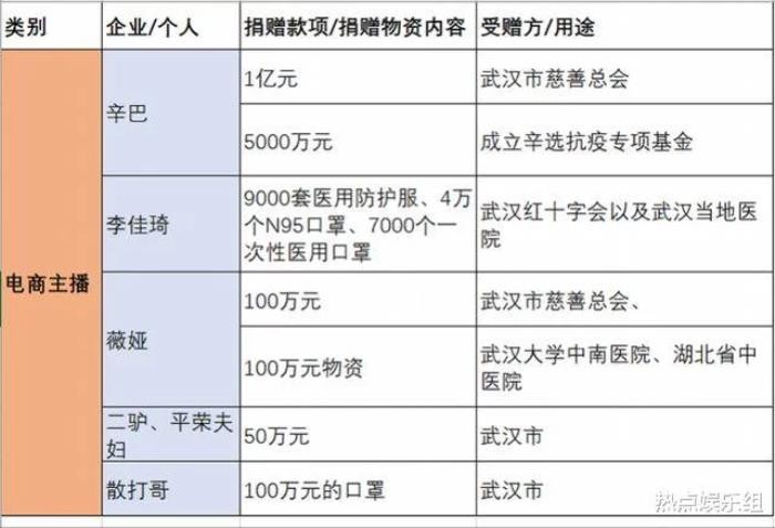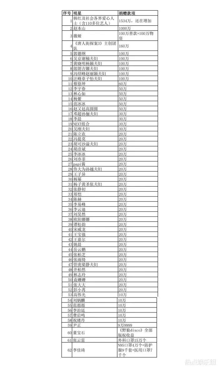 明星的名单,170多位明星及网红捐款详细名单