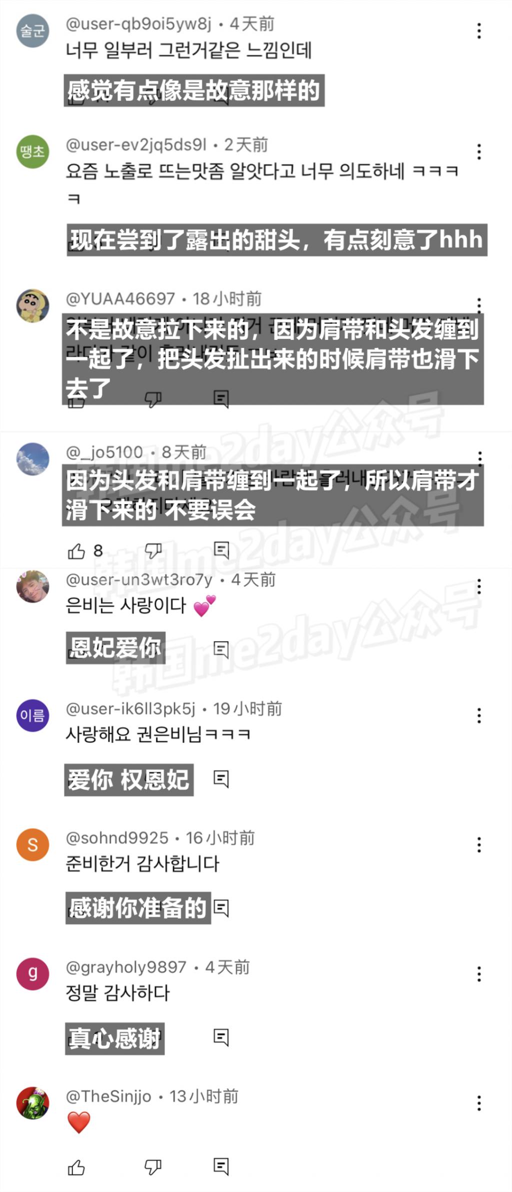 因为权恩妃刚说完 " 为大家准备了一些东西 " 肩带就滑落,所以看到这段视频的网友们调侃地说道:" 原来准备的就是这个啊 "、" 正确答案:拉下肩带 "。不过也有部分网友留言质疑,猜测权恩妃是连续几次做相同的动作,最终营造出 " 无意间 " 带落肩带的动作,持续制造与身材有关的话题热度的。