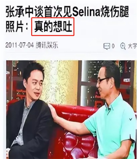 更让人感到气愤的是,张承中面对主持人的采访时毫不掩饰的表示,在Selina康复期间他看到烧伤后的腿就想吐。甚至写了一本书将Selina不想公之于众的烧伤照以及私密照片、事件进行发表。从而扩大自己的影响力。