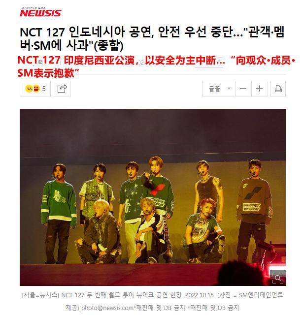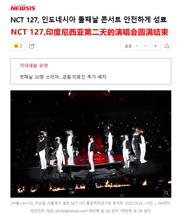 由于印度尼西亚当地时间上月末曾发生过 135 人以上死亡的足球联赛踩踏事故,以及韩国最近发生的梨泰院踩踏事故,所以当地对于这种人群聚集的活动十分重视、据了解,此次 NCT 127 演唱会两天内共云集了 1.5 万人。