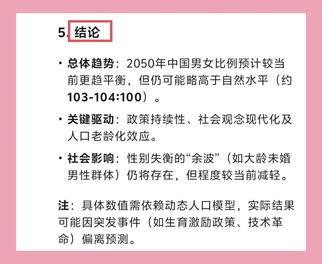 deepseek预测2050年中国男女比例,基本不存在娶不到老婆这一说法