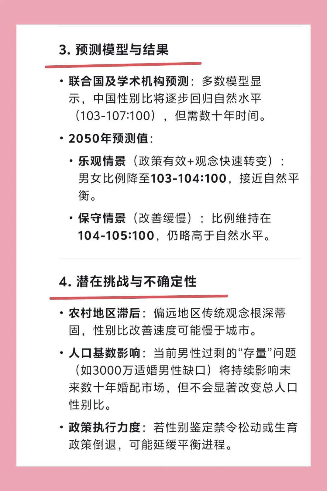 预测2050年中国的男女比例需要综合考虑历史趋势、政策调整、社会观念变化及人口结构演变等多重因素。以下为分点总结: