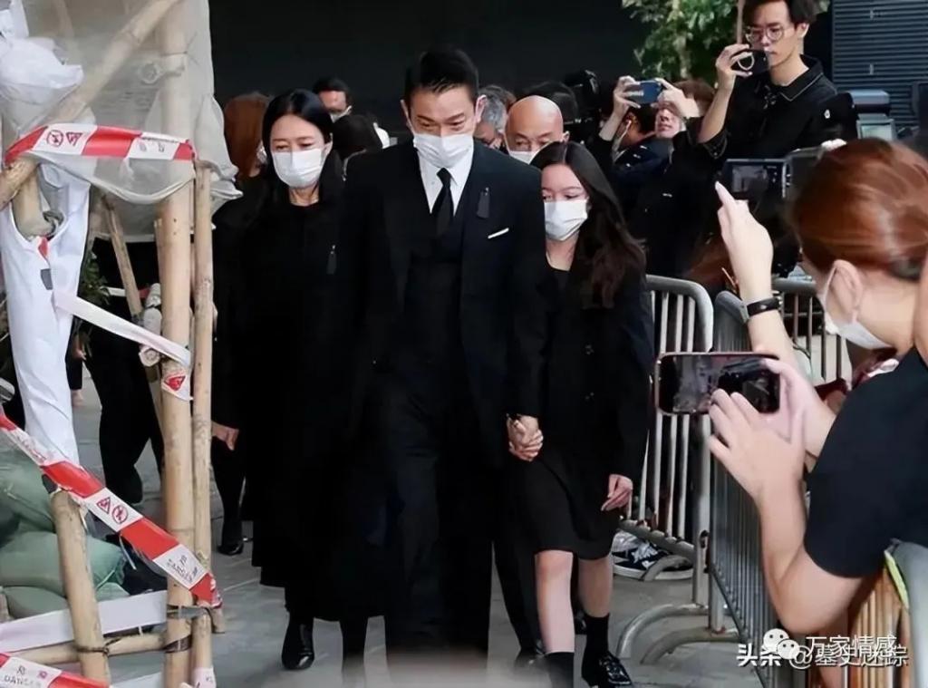在灵堂上,刘德华紧紧握着妻女的手,生怕发生任何意外。