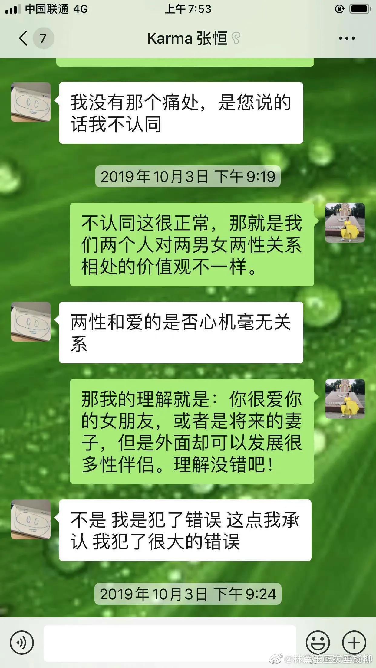 从聊天截图来看,张恒承认自己出轨,并有多个性伴侣,一直强调真爱和性伴侣不同,恳求郑爽父母的原谅。