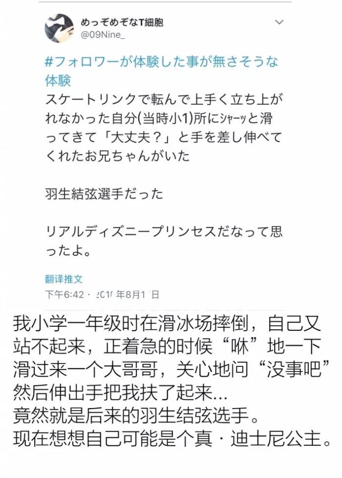 这种难以想象的幸运不仅出现在自带光环的明星身上,普通人也有这样的幸运时刻,例如日本推特上最近爆火的一个话题,分享一件大家不曾经历过的事,这位朋友分享自己在滑冰场摔倒,被羽生结弦扶起来的事情。