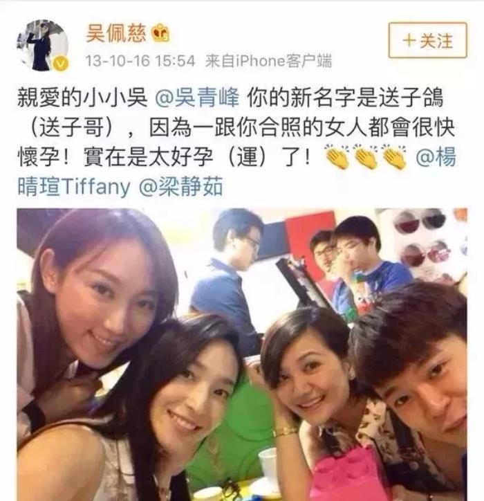 第一代锦鲤吴青峰被大家称之为“送子观音”,之前和他合照过的女艺人没过多久就怀孕有baby了。