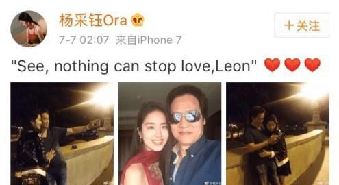 两年前,杨采钰被拍到与陈金飞街头拥吻的镜头,传出恋情。不似旁人会否认,会沉默。杨采钰在自己的平台上发了条微博,并以《这个杀手不太冷》中的经典台词作为对白公开了与陈金飞的恋情。