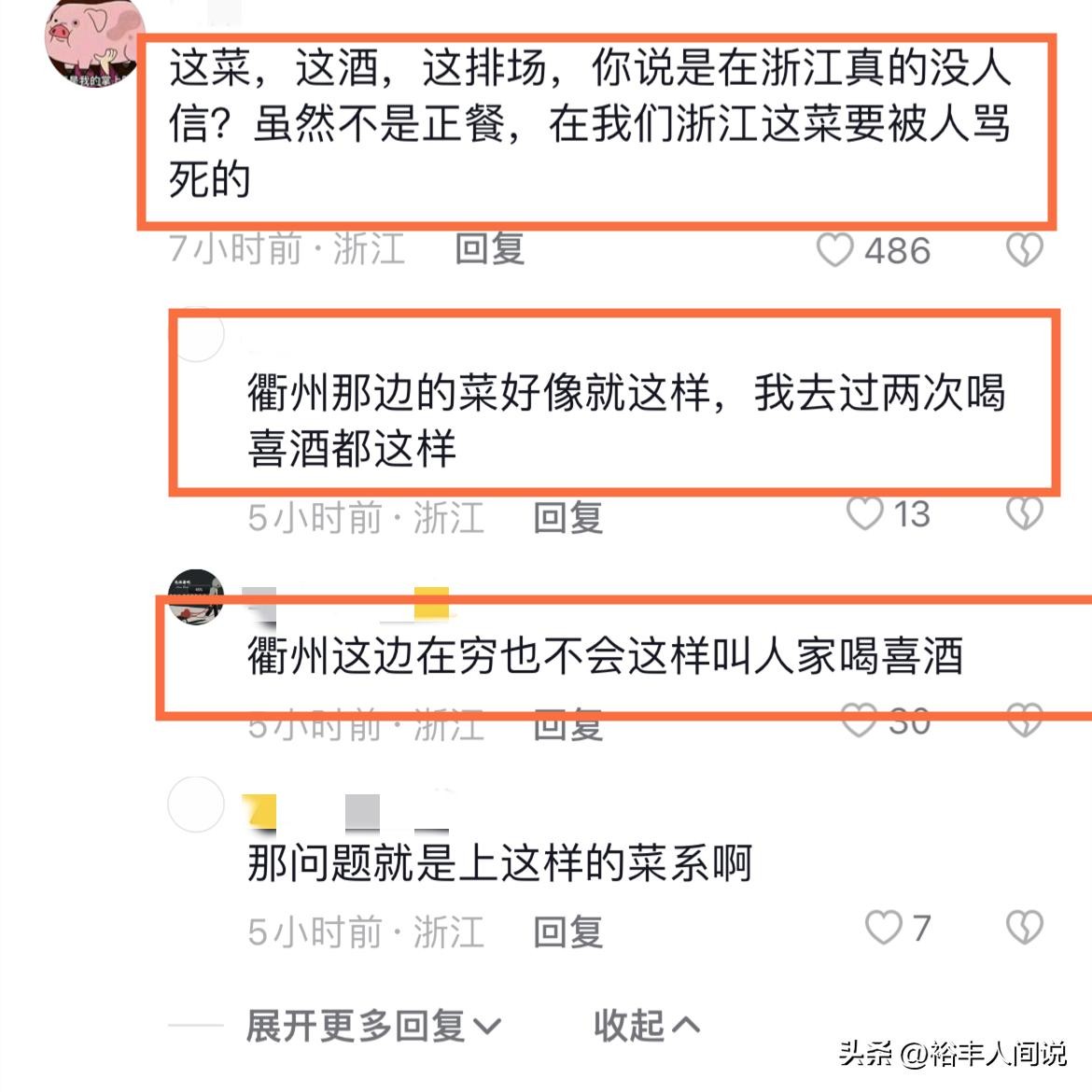 不过这一回答立刻遭到打脸:衢州这边再穷也不会这样叫人家喝喜酒、这碗?这菜?也太拉低档次啦……