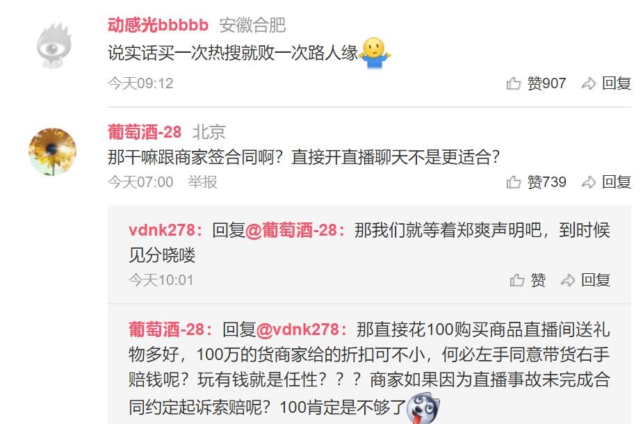 这样的销售行为,让郑爽感到不适,更是谈到了自己的人设,直言,不惧怕什么直播翻车之类的,业绩更和自己没关系。