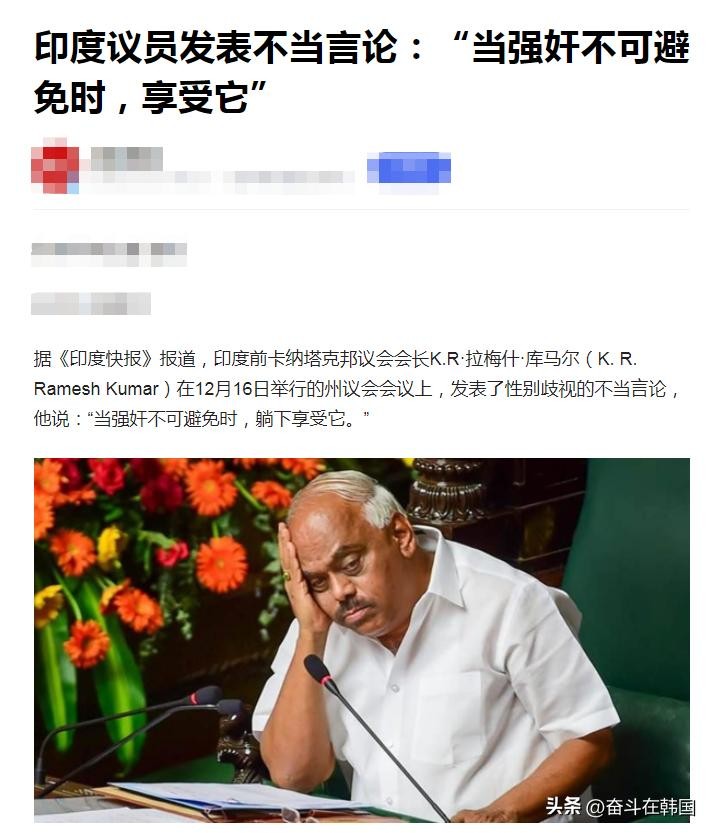 据悉,印度法院曾以“受害女性穿着刺激性服饰,可能存在性意向”为由,批准了犯罪者的保释申请。印度前卡纳塔克邦议会会长K.R·拉梅什·库马尔还曾在去年妄言:“当强奸不可避免时,躺下享受它。”