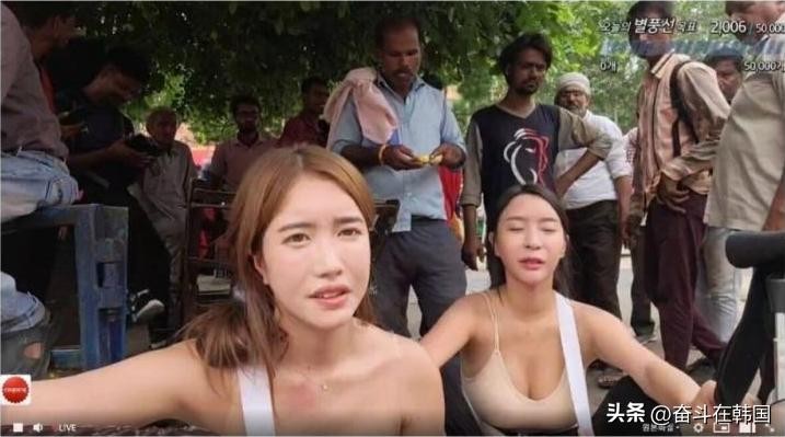 通过直播视频回放我们可以看到,朴秀朴和汝蔚穿着吊带和抹胸等较为暴露的衣服坐在路边等待火车。在这过程中,她们周围围了很多印度男人,朴秀朴和汝蔚不仅不胆怯还自在地跟周围的人聊着天。