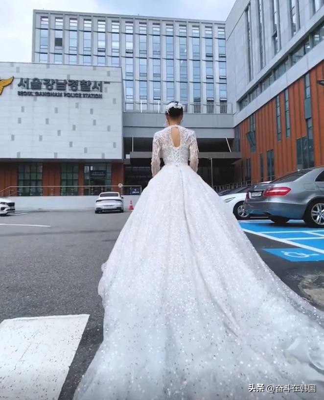 本月19日,警方以过度暴露的嫌疑传唤比基尼女进行调查。谁成想比基尼女身着白色婚纱、坐着黄色跑车十分张扬地来到了警局。