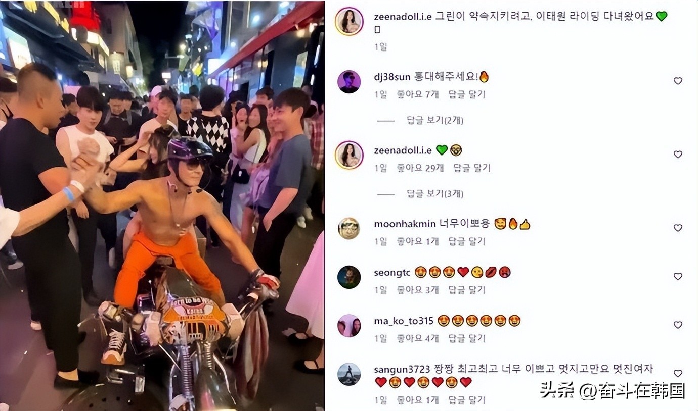本月28日,比基尼女和Boss J又在首尔梨泰院再次上演了“比基尼骑行”。
