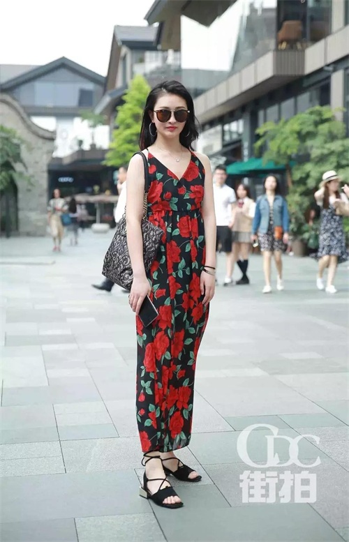 真的是太阳一出来就是十分的炙热,碎花吊带连衣裙喻示夏天的到来,配上黑色的绑带凉鞋,有种要去日光浴的感觉,配上简单大方的单肩包,十分的休闲惬意。