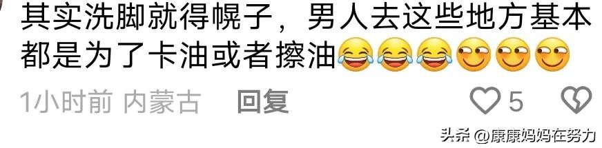 最后还有友友总结男人去洗脚只是幌子,去这地方无非就是两个目的,为了卡油和擦油!