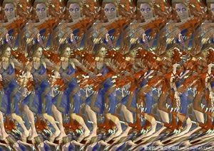 鼻尖贴近并对准三维立体图的中心,眼睛呈现斗鸡眼状态,慢慢拉开图片距离,逐渐调整视线,保持20厘米左右,隐藏的美女就出来了,慢慢欣赏吧。