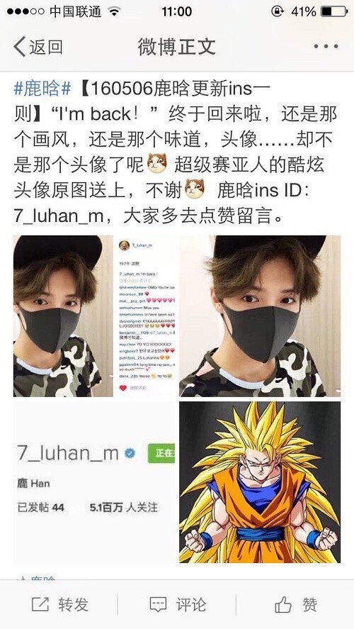 鹿晗成中二少年:龙珠死忠粉,上传合体照片