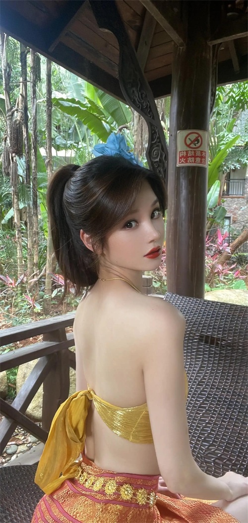 我们看到邱意浓的这组写真中,她穿着应该是西双版纳的少数民族服装,由于当地少数民族的服装特点受到天气比较热的影响,所以呈现出低胸露背的特点,这是非常正常的。