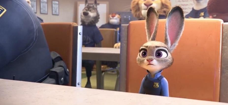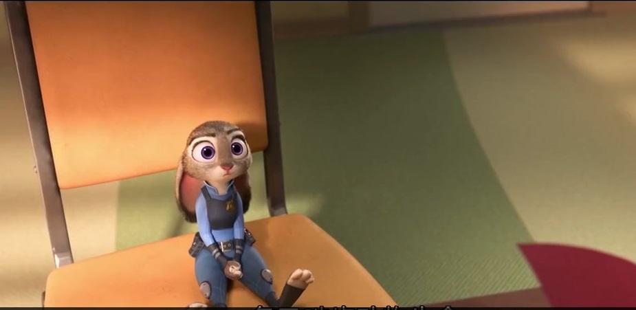 朱迪感觉自己被骗了,一路跟着尼克理论。不但没有抓住他的把柄,还把自己弄得狼狈不堪。回到宿舍,梦想与现实的巨大差距让朱迪很是丧气。