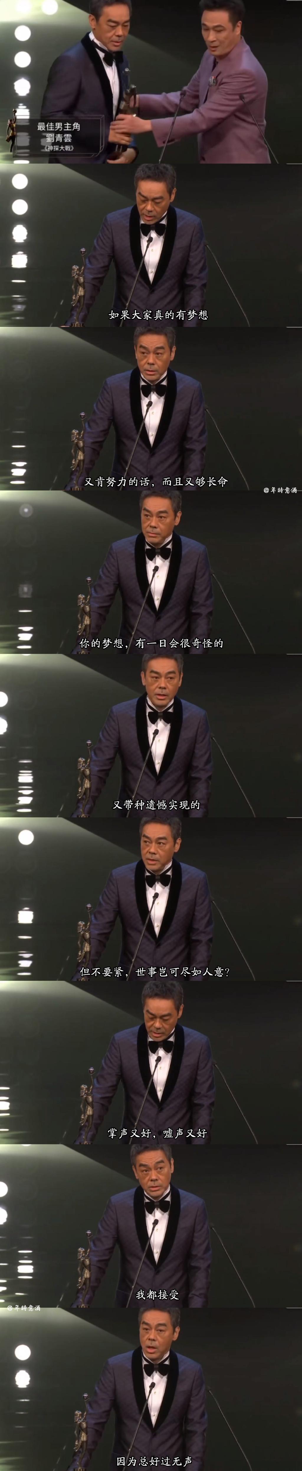 恭喜刘青云,祝贺刘青云,终于可以平步青云,笑傲江湖,希望你继续加油,反超梁家辉的四次,追平梁朝伟的五次也不是没有可能。