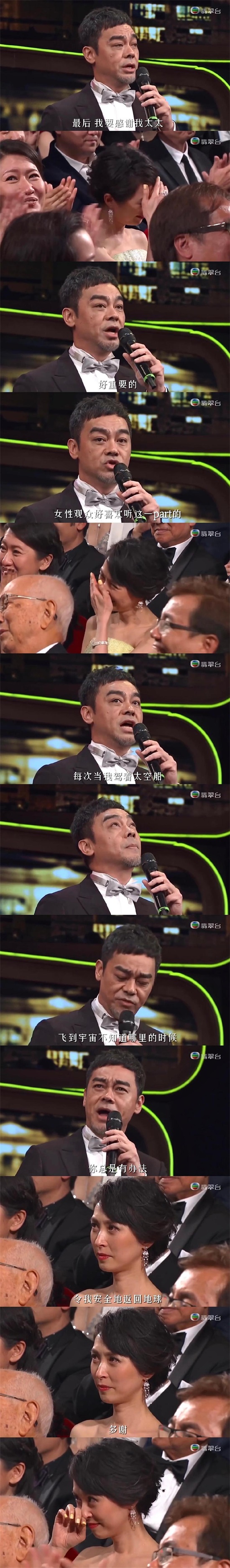 “最后,我要感谢我太太。每次当我驾着太空船,飞到宇宙不知道哪里的时候,你总是有办法,令我安全地返回地球。”