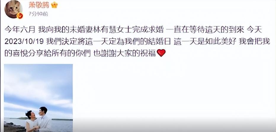 萧敬腾官宣结婚,晒与老婆海边甜蜜合照,十几年爱情长跑终有结果