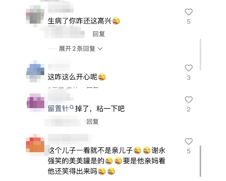 看到贺树峰在他母亲病床前露出笑容的画面后,网友纷纷吐槽:“生病了你咋还这么高兴。”