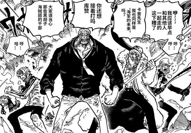 在《海贼王》漫画此前的剧情中,卡普和黑胡子海贼团的战斗已经到达了最高潮的阶段,卡普以一敌众车轮战黑胡子团众人,虽然打倒了好几位干部,但是他自己为了保护克比也被希留捅穿了身体。之后卡普和曾经的徒弟青雉对轰,两人都被冲击波炸飞,卡普还受伤倒在地上。
