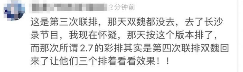 因此有网友猜测,可能彩排了一次这个版本,然后魏大勋、魏晨录完节目回来,再次进行了一次彩排看效果,才有了粉丝曝光的那一版走位视频,而最终可能这一版并没有通过,还是轮 C 走位。