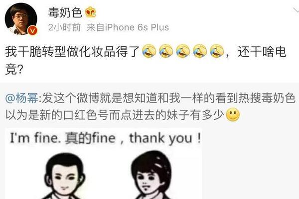 当时黄旭东还转发了杨幂的微博,说自己干脆转型卖化妆品得了,毕竟这个毒奶色还真是非常火哦,说不定热度比自己做电竞解说员还火呢。