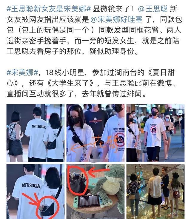 9月8日,网上曝光王思聪新欢的身份,被指是十八线小明星宋美娜,两人近日逛街被偶遇,举止亲密,疑似正在恋爱中。