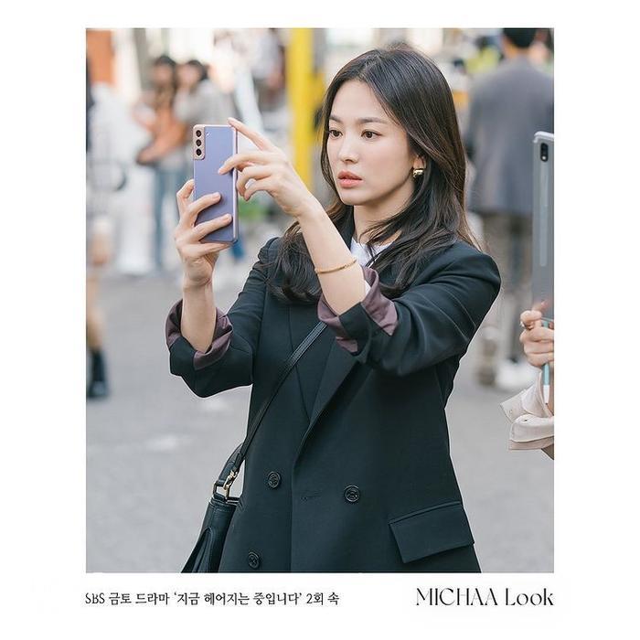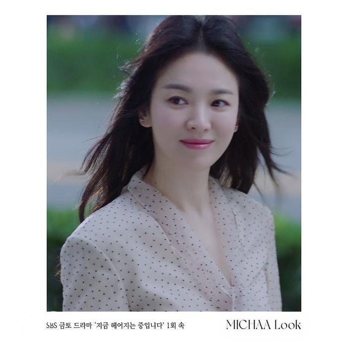 在《现正分手中》宋慧乔饰演的河英恩是一位时装设计师,将与张基龙谱出错中复杂的爱情故事,由第二集的 19 禁床戏后(已解除),两人 CP 感也越来越搭档。而女主角宋慧乔在第一二集开播已马上出现大量时尚优雅的行政造型!宋慧乔多次穿上她代言的韩国品牌 MICHAA 各款仙气服装和小众品牌 Your Name Here 的深蓝牛仔造型,塑造宋慧乔时尚大方的设计师造型,同时亦有韩国人气潮牌 emis 的卫衣套装等。